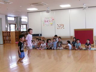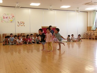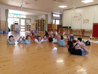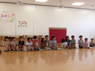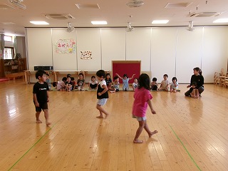 2025年09月24日 リズムをしたよ 4歳児 ほし ホールで久しぶりにリズムをしました。たくさんのリズムをして、身体をしっかり動かしました。待っている間も姿勢がすごく正しくて素敵でした✨ 一つひとつのリズムで上手だった子をお手本でしてもらいました。恥ずかしながらも嬉しそうにしてくれていました。またしようね☆ 一覧へ戻る