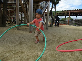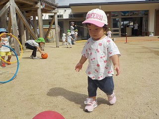 2025年09月25日 たのしいね♪ 1歳児 ゆき ボールやフラフープをだして遊びました。 保育者がボールやフラフープを転がすと嬉しそうに追いかけ、楽しくなって「もういっかい」と言わんばかりにボール等を持ってきました。 転がし合いっこも楽しいね! ~おねがい~ 戸外に出る際、こどもたちが自分で靴を履けるように声をかけています。靴のサイズの見直しをお願いいたします。 一覧へ戻る