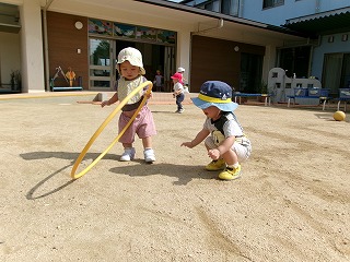 戸外に出る時間が今までより長くなり、こどもたちの興味関心の幅も広がっています。転倒し怪我を防ぐためにもズボンのすそが長すぎないように配慮お願いします😊