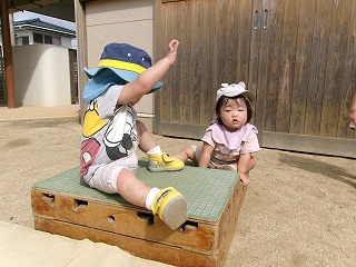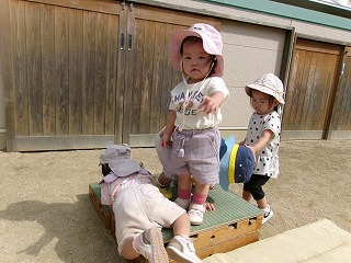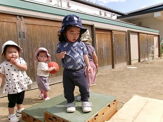 中には2段の高さでは物足りない子も見られました。戸外で遊びやすい気候になってきたので、しっかり身体を動かして身体づくりをしいと思います。