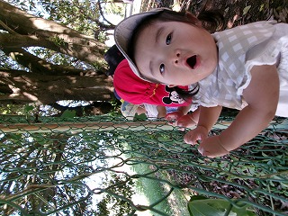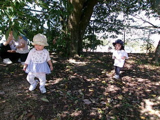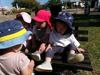 公園では、どんぐりを拾ったり幹線道路を走る車を「お~い」と呼んだりと散策を楽しみました。