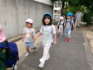 2025年10月15日 つき組さんと一緒に 5歳児 そら つき組と一緒に運動会の会場である山陽東小学校まで歩いて行きました。 つばきグループとれんげグループ、さくらグループとたんぽぽグループで手を繋いで行きました。 グラウンドに到着すると去年のことを思い出したようです。 「来たことある人―?」「はーーい」 小学校への憧れがあるそら組にとって、小学校のグラウンドで運動会ができることを楽しみにする姿がありました。 帰り道もつき組と手を繋いで帰りました。つき組さんがこけないようにゆっくり歩くそら組が素敵でした。 こども園最後の運動会いっぱ楽しもうね☆ 一覧へ戻る