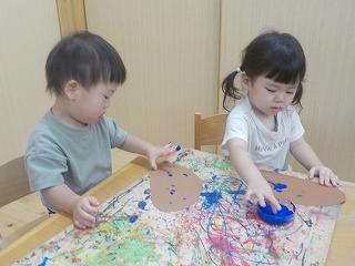 2025年10月15日 ペタペタと👉 1歳児 ゆき 今週のハロウィン会で身につける“どんぐり”をこどもたちに指スタンプで飾りつけをしてもらいました。 青・黄・緑の三色より自由に色つけました。 たくさんつけてくよ~♪ 大きなどんぐりができあがる予定です。また後日写真を掲載しますね♪ 一覧へ戻る