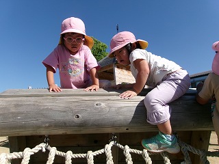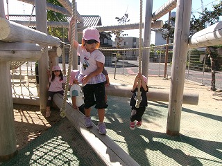 その後は、戸外であそびました。久しぶりのぐるぐる(遊具)あそび。手足をしっかり使って楽しむ姿が見られましたよ😊