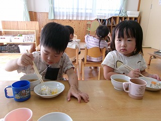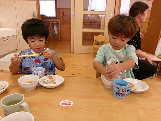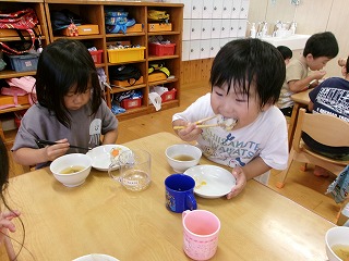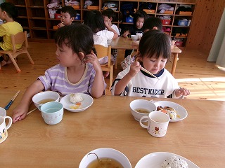 誕生日メニューということで、給食を楽しみにしていたこどもたち。大きな口でモリモリ食べ「おいしい~」と満足そうでした☆