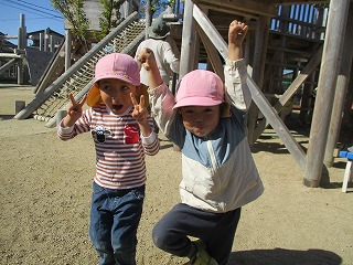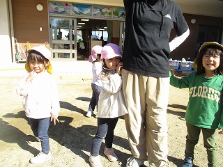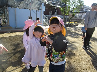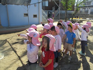 今日は、園庭でにじ組と一緒に踊りをしました。