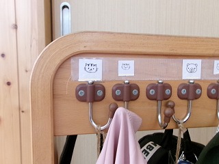 お子さんひとり一人、上着を掛けれる場所を用意していますのでそちらにお掛けください。
