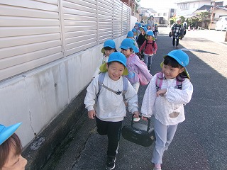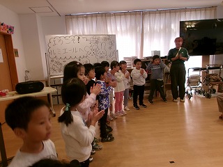 2025年10月29日 ルミエールに行きました 5歳児 そら れんげグループでルミエールに行きました。 交流会で使うためCDデッキをこどもたちが運びました。手が疲れると交代しながら力を合わせて運びました。 交流会ではうた「ちいさないのち」とソーラン節と手あそび「お寺の和尚さん」を披露しました。 最初は緊張していたこどもたちでしたが、どんどん笑顔になっていきました。 ちいさないのち ソーラン節 お寺の和尚さん 最後はこどもたちが先生になって折り紙でどんぐりの作り方をおじいちゃんおばあちゃんに伝えました。 来月はたんぽぽグループが交流しに行く予定です。 一覧へ戻る