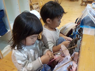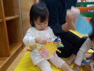 2025年11月06日 ぱっちんできるかな 1歳児 ゆき 洗濯ばさみをつかったあそびを楽しんでいるゆき組。 細かい指先の動きなので、まだ難しい子の姿もみられますが「ここをぱっちんだよ」と職員と確認しながら少しずつ使い方を覚えていきます👀 帽子かけの洗濯ばさみも、こどもたち自身でやってみます! こどもたちのやってみようとする気持ちを大切にしながら、 少しずつ身の回りのことも自分でできるようにしていきたいです。 一覧へ戻る
