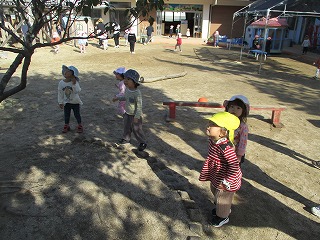 2025年11月12日 おーちたおちた 2歳児 にじ 園庭で“おちたおちた”をしました♪ 前までは保育者が「おーちたおちた」と言うとこどもたちは「なーにがおちた?」と保育者と一緒に言っていましたがやり取りを覚えて保育者とこどもたちで言い合いっこできるようになってきました。 果物のイラストを見つけると「ここ!こっち!」と保育者だけでなく友だちにも教えて走ります!クラスの友だちと一緒にするあそびが楽しくなってきました。 一覧へ戻る