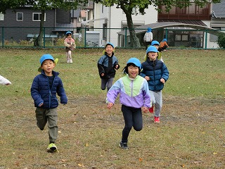 広い公園内を走り回ってリレーをしているこどもたちも。