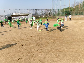 Aグラウンドに行ってたくさん走った後は園に帰ってきて荷物の整理とお泊り保育帰りの会を行ないました。