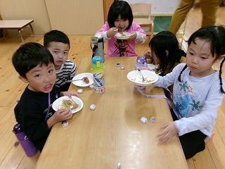 「美味しい~♡」とにっこり笑顔で食べるこどもたちでした。