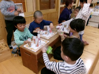 友だちと協力しながらどんぐりを貼る素敵な姿が見られましたよ。