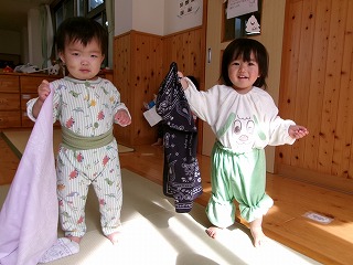 はな組の最近のブームはバンダナあそびです。バンダナに玩具を入れお買い物ごっこ気分を味わうのも大好きですが『うえからしたから』のうたに合わせてバンダナを振ったり最後に“いないいないばあっ”をしたりが楽しく何度も「(もう1)っかい☝🏻」とリクエストしてくれます😊✨