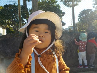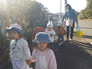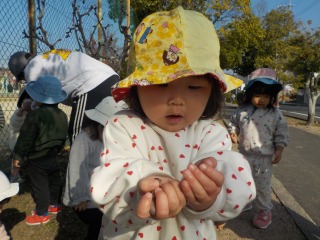 2025年11月21日 散歩へいってきました👣 1歳児 ゆき 2グループに分かれてAグラウンドまで散歩へ行ってきました。 「どんぐりあるかな~?」とどんぐりのうたを歌いながら出発です♪ Aグラウンドに着くと、大喜びでかけだしていくこどもたち。広い場所でしっかり身体を動かしました。 Aグラウンド横の沿道にもどんぐりがたくさん👀 夢中になってどんぐり拾いを楽しみました。 あったね~! 11月28日(金)は第三回目の健脚活動です。 たくさんのサポーターをお待ちしています! 一覧へ戻る