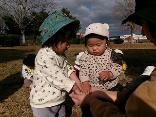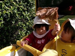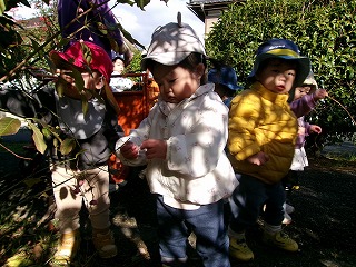 緑道には自然物がたくさんあって、気になるものに手を伸ばすこどもたちでした。