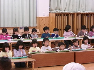 「お家の人がいっぱいいて緊張した」「たくさん来てくれて嬉しかった」という声がそら組のこどもたちから聞かれました。また、桜が丘小学校と山陽東小学校の校長先生も来られており、「小学校で待ってるよ!」という声掛けにこどもたちも嬉しそうな表情を見せていましたよ。
