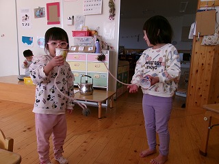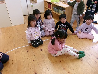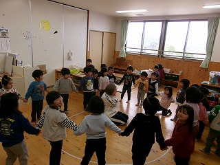 友だちと手をつなぎ、歌を口ずさみながらしましたよ♪