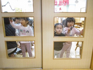 自分たちで椅子を持って来て窓ふきをしました♪