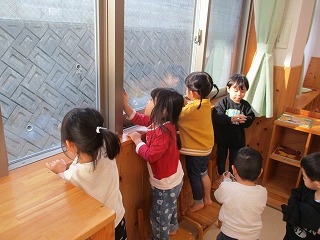 新聞紙を濡らして窓ふきをしましたよ♪
