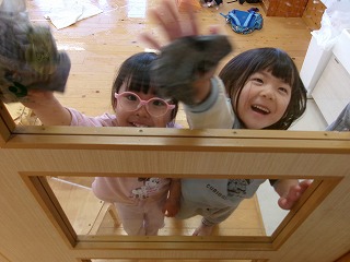 こどもたちには、①自分のロッカー ②グループの部屋の床や窓 を掃除しようね。と話をしました。