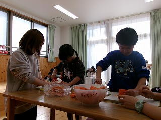 皮剥きをしている時には、みんな真剣な表情でした。周りから見ている子も「おぉ、上手!」「手、気をつけて!」と友だちを気にかけていましたよ。