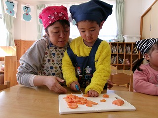寒い日にはもってこいの豚汁作り。それぞれ楽しい思い出を作ることができました。