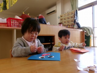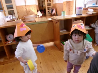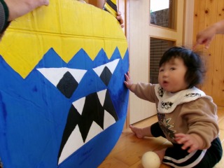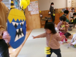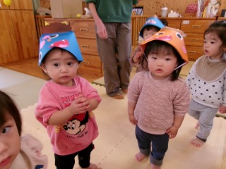 2026年02月07日 鬼退治👹 0歳児 はな 2月3日は『節分』でしたね。こども園にも鬼が来ました。ですが、鬼に会う前に少しでも豆まき文化を知ってもらおうと、部屋で少しだけ豆まきを楽しみました。 オニだぞ~ オニとタッチ✋ 鬼はそと~(勢いがあり、ぶれてしまいました💦) 豆まきのイメージはできましたが…実際に鬼には立ち向かえませんでした💦ですが、いい経験になりました✨ そして、はな組にも可愛い鬼が来ました♡ お家でも被ってくれたかな?可愛い鬼さんに癒されましたか??みんなの心の中に住んでいる○○鬼が退治できたかな?? 一覧へ戻る
