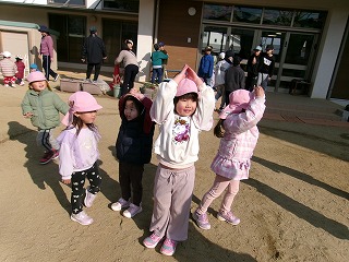 2026年02月06日 バナナ鬼をしたよ🍌 3歳児 つき 普段戸外であそんでいると、お兄ちゃんやお姉ちゃんがバナナ鬼をする姿を見て「バナナ鬼しよう」と保育者まで言いに来る姿がありました。 ということで『バナナ鬼』に挑戦! ルールを伝えやってみると … 『大人VSこども』が大盛り上がりでした😊 ~今日の『バナナ鬼』のルール~ ①ゴリラ(鬼役)に捕まらないように逃げる ➁捕まったらバナナになる ③バナナの友だちを助ける 一覧へ戻る
