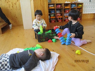 2026年02月07日 つき組の部屋へゴー! 2歳児 にじ 階段を上ってつき組の部屋に遊びに行きました♪手すりを持ってゆっくり上がります♪ つき組に部屋に行く前にそら組の部屋を見たりほし組の部屋を見たりして2階を探検。進級に希望が湧いてくるようです。にじ組の部屋にはない玩具を見て興味深々✨ すこしずつ進級に向けて心も身体も慣らしていきます。 一覧へ戻る