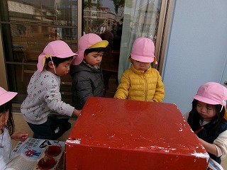 2026年02月13日 今日の活動♪ 3歳児 つき ほし組の数名と一緒にバナナ鬼対決をしました。 強いほし組に「頑張るぞ!」と勢いよく勝負に挑みましたが… 結果はこどもたちに聞いてみてくださいね😊 すごくいい表情で走る姿は素敵でした! その後は、さくらんぼ保育園で見た『ピザ窯』作りをしました。 段ボールに絵の具で色塗りをしています。 どんなピザ窯ができるかは、お楽しみです😊 一覧へ戻る