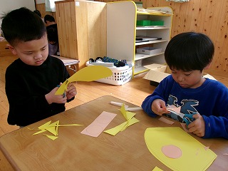 2026年02月20日 ひな人形の製作🎎 4歳児 ほし もうすぐひな祭り🌸そこでひな人形の製作をしました。。はさみの使い方、のりの量、折り紙の端と端を合わせることを再確認し、一つ一つ丁寧に作る姿が見られました。 見本を見ながら「王冠はお雛様が被ってるね!」「お内裏様はどっち?」と確認して友だちと一緒に作りました。「ひなあられ食べれるかなぁ?」とひな祭りの日を楽しみにしている姿もありましたよ♪楽しいひな祭りになりますように🌸 一覧へ戻る