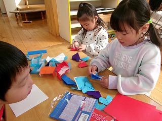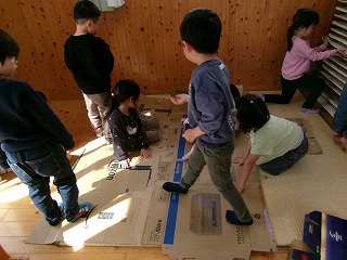 2026年03月05日 次のやっちゃおうデーは… 4歳児 ほし 3月のやっちゃおうデーは何とほし組主催です。 「そらぐみさんのために、何がしたい?」という投げかけから、 「絵を描きたい」「家を作りたい」「何かあげたい」などいろいろな案が出てきました。 その中で決まったのは…宝探し&迷路&家作り! あまり日にちがないので「大丈夫?できる?」と聞くと「まかせとって👍」とのことでした。 それぞれ作りたいものに分かれて友だちと協力して作っています✨ そら組さん喜んでくれるかなあ…✨ 一覧へ戻る