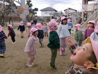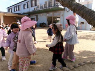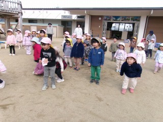 2026年03月13日 つき組、にじ組一緒に 2歳児 にじ 3歳児 つき にじ組とつき組でリズムとだるまさんがころんだをしました。 にじ組は初めて外でリズムをするのでいつもと違う場所でやってみるのがとても楽しかったようです♪つき組さんがリズムをするときはじっと見て自分たちの番になった時に同じ動きをしていましたよ。 リズムの後はだるまさんがころんだをしました♪つき組さんの真似をして何度か遊んだりダルマ役をしてみたりしましたよ。 また一緒に集団あそびやリズムをしたいと思います♪ 一覧へ戻る