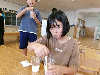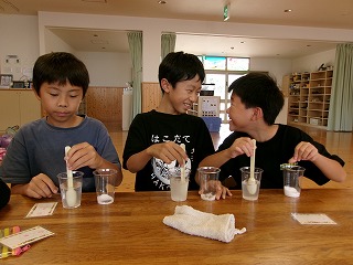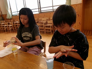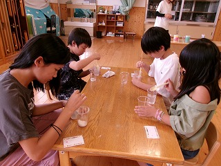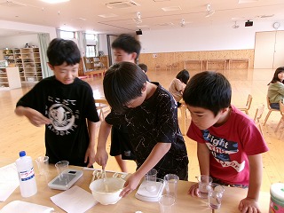 水と塩をしっかりと混ぜて食塩水を作ることが1番のポイントなので、集中してじっくりと混ぜていきました。