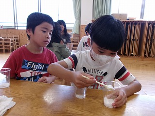 2個とも上手くできた子や小さいのが数個できた子など様々でしたがみんなの真剣な表情や楽しそうな表情が見られて良かったです☺